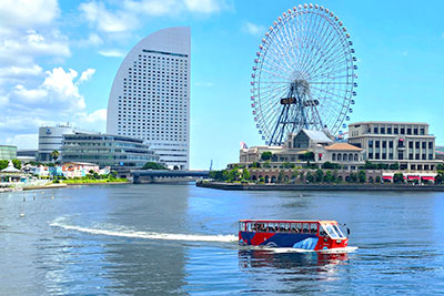以冒險的感覺享受街道和水上的水陸兩用巴士。從陸上和水上的兩側觀光橫濱,可以體驗面向大海開放發展的港口橫濱。巴士濺入大海的瞬間是不分年齡都能享受的娛樂。
