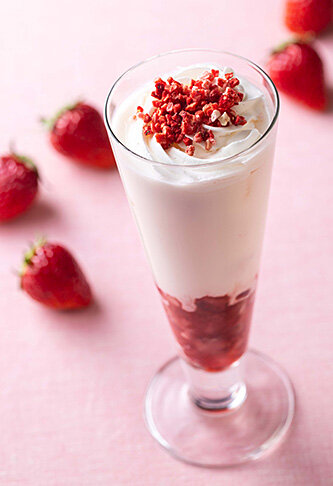 混合了士多啤梨果肉和牛奶、鮮忌廉和冷凍幹燥的士多啤梨粒,是一杯清爽的甜味。根據混合情況,也可以享受味道和口感的變化。
