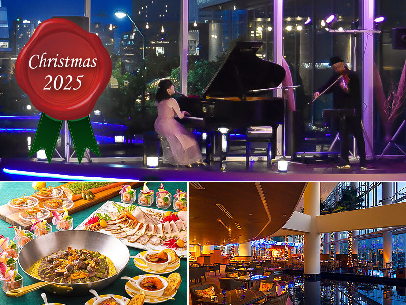 您可以一邊享用聖誕自助餐中豐富多彩的料理,一邊欣賞歌聲清澈的創作歌手佐藤廣裡和“戰鬥小提琴演奏家”西垣惠彈演奏的音樂。
